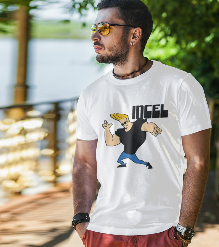 Incel Character with Blond Hair and Sunglasses Shirt made from 100% pre-shrunk ring-spun cotton, unisex regular fit based on U.S. standard sizing. The shirt is designed, cut, sewn, and printed in the United States. Available in sizes S-5XL.