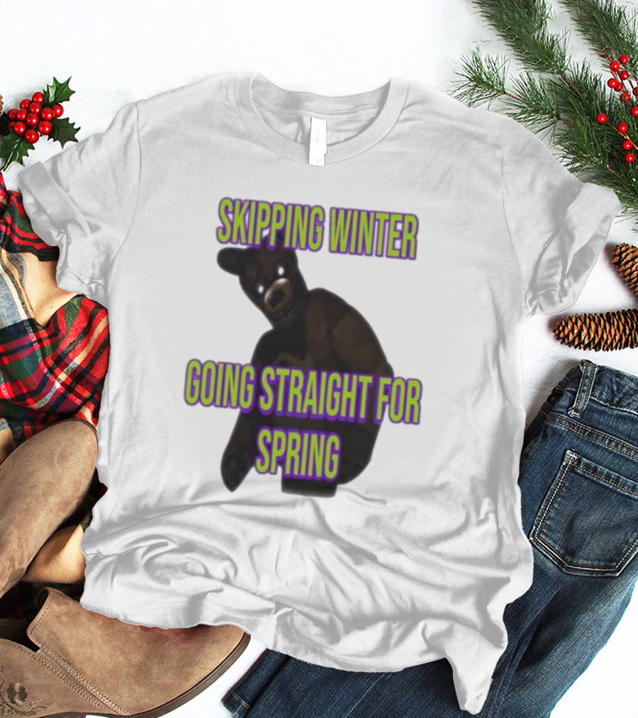 Skipping Winter Going Straight For Spring Five Nights at Freddy's Bear Shirt made from 100% pre-shrunk ring-spun cotton, unisex regular fit based on U.S. standard sizing. The shirt is designed, cut, sewn, and printed in the United States. Available in sizes S-5XL.