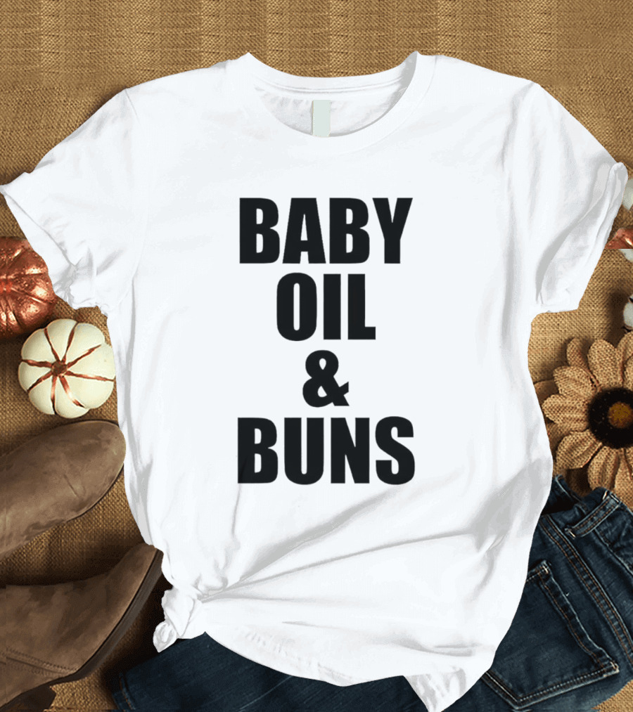 Baby Oil and Buns Fun Phrase Shirt made from 100% pre-shrunk ring-spun cotton, unisex regular fit based on U.S. standard sizing. The shirt is designed, cut, sewn, and printed in the United States. Available in sizes S-5XL.