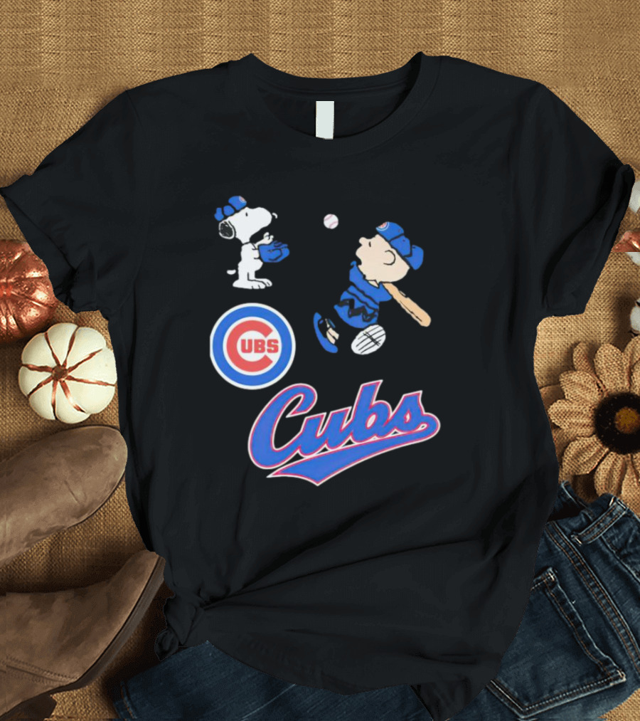 Snoopy and Charlie Brown in Chicago Cubs Baseball Uniforms Shirt made from 100% pre-shrunk ring-spun cotton, unisex regular fit based on U.S. standard sizing. The shirt is designed, cut, sewn, and printed in the United States. Available in sizes S-5XL.
