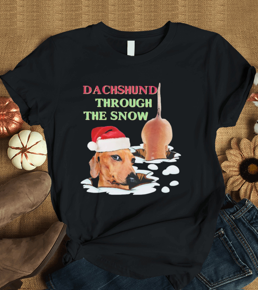Dachshund Through The Snow Santa Hat Dog And Snow Bubbles T-Shirt