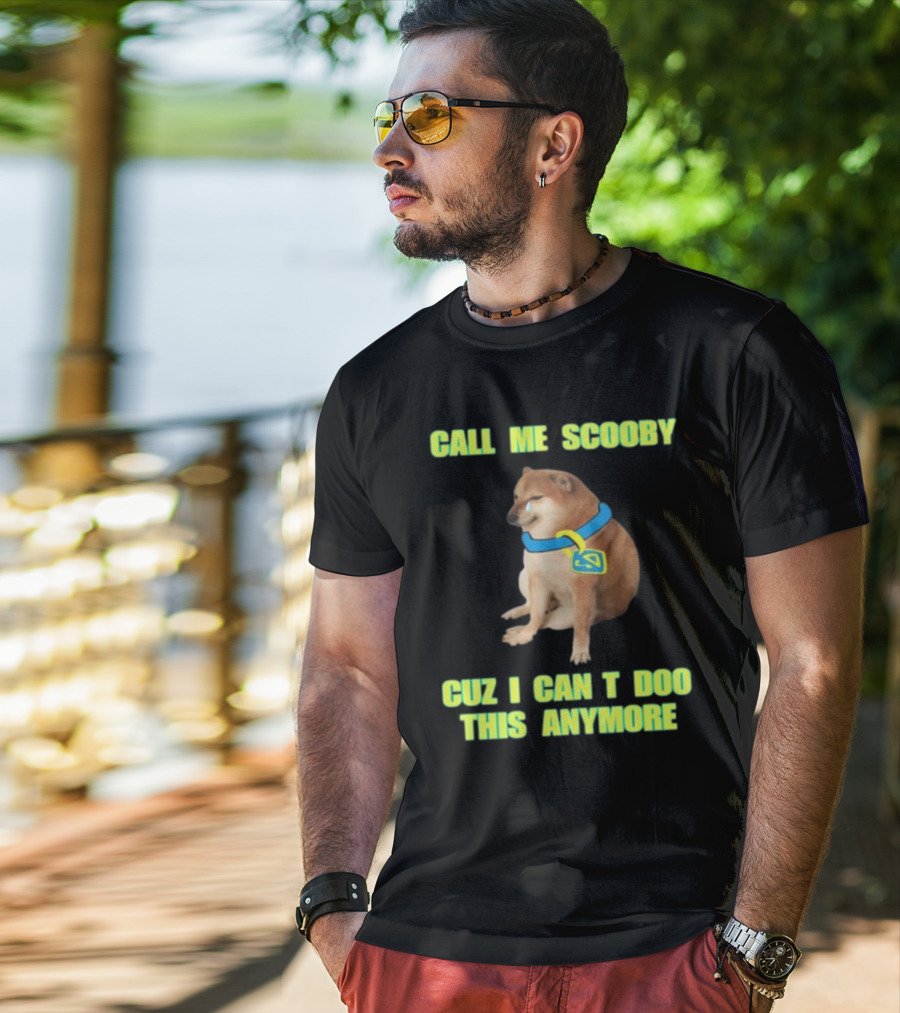 CALL ME SCOOBY CUZ I CAN'T DOO THIS ANYMORE CHEEMS CRINGEY Shirt made from 100% pre-shrunk ring-spun cotton, unisex regular fit based on U.S. standard sizing. The shirt is designed, cut, sewn, and printed in the United States. Available in sizes S-5XL.