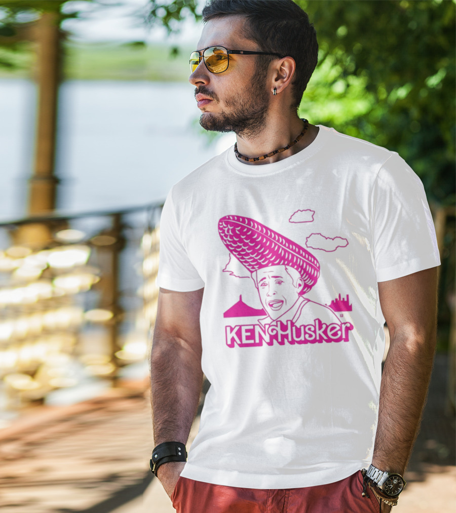 Ken Husker Corn Hat City Skyline Shirt made from 100% pre-shrunk ring-spun cotton, unisex regular fit based on U.S. standard sizing. The shirt is designed, cut, sewn, and printed in the United States. Available in sizes S-5XL.