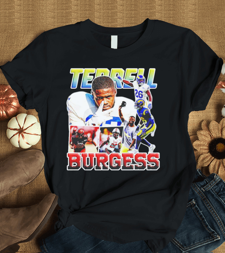 Terrell Burgess Los Angeles Rams Football Collage Shirt made from 100% pre-shrunk ring-spun cotton, unisex regular fit based on U.S. standard sizing. The shirt is designed, cut, sewn, and printed in the United States. Available in sizes S-5XL.