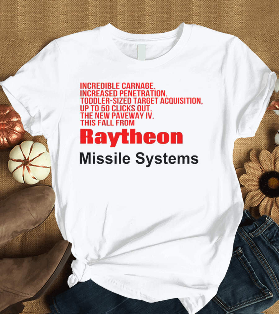 Incredible Carnage Increased Penetration Toddler-Sized Target Acquisition Up to 50 Clicks Out The New Paveway IV This Fall From Raytheon Missile Systems Shirt made from 100% pre-shrunk ring-spun cotton, unisex regular fit based on U.S. standard sizing. The shirt is designed, cut, sewn, and printed in the United States. Available in sizes S-5XL.