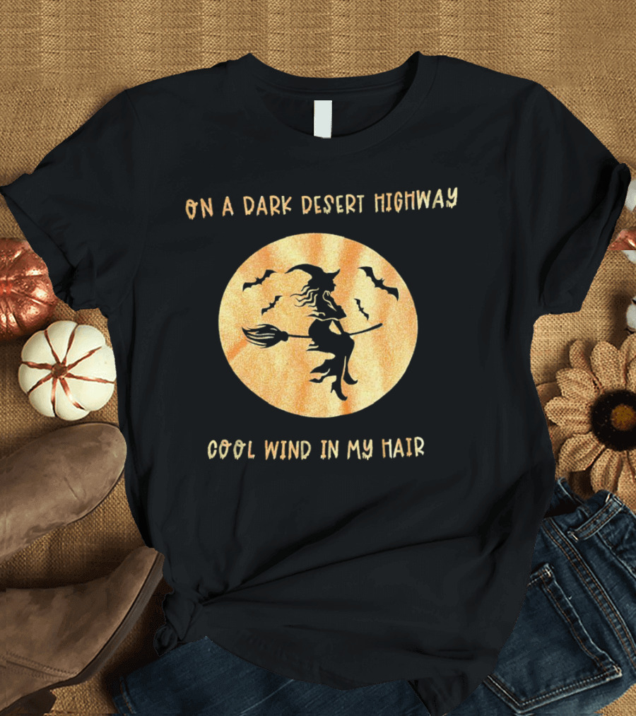 On A Dark Desert Highway Witch Cool Wind In My Hair Halloween Moon Bats T-Shirt