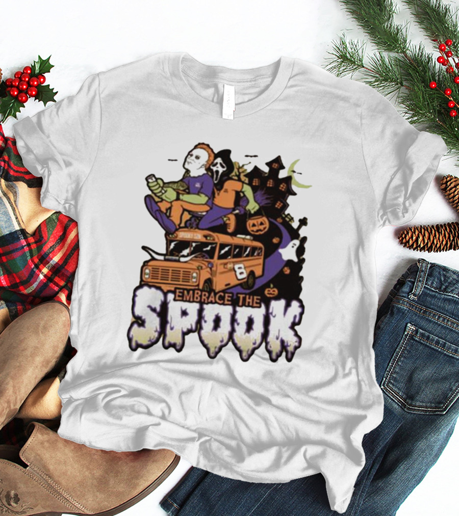 Embrace The Spook Bus With Horror Characters And Haunted House T-Shirt