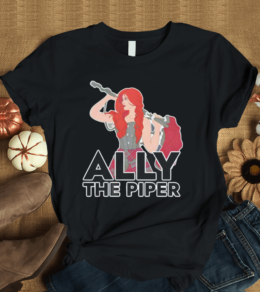 Ally The Piper Scottish Bagpipe Musician Redhead Shirt made from 100% pre-shrunk ring-spun cotton, unisex regular fit based on U.S. standard sizing. The shirt is designed, cut, sewn, and printed in the United States. Available in sizes S-5XL.