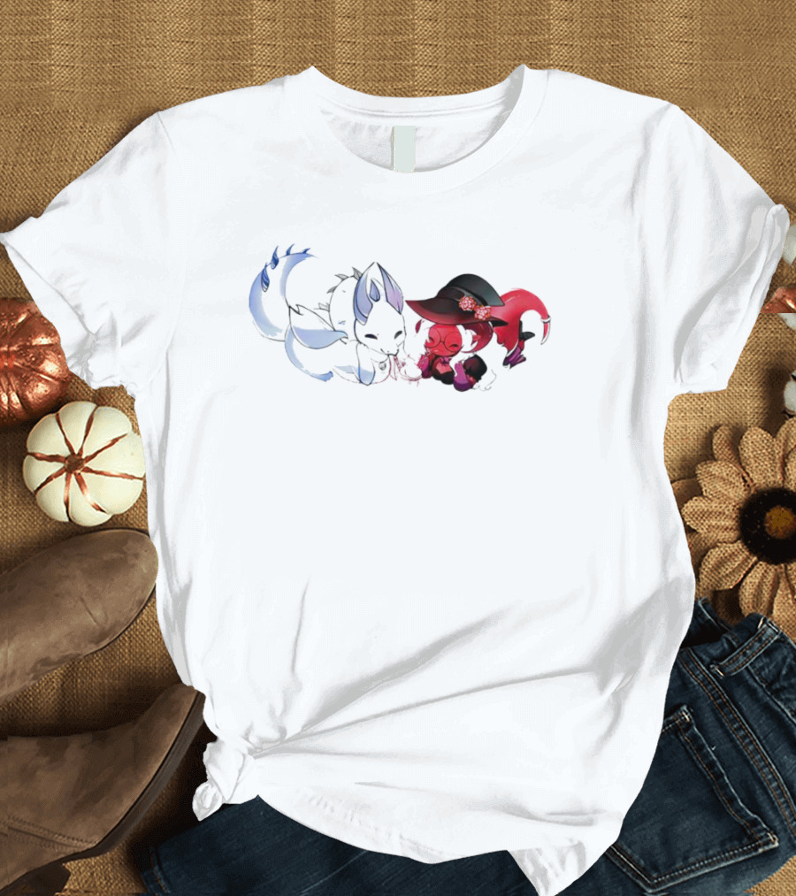 Dragon Love Kawaii Kitsune And Kitsune Witch Duo T-Shirt