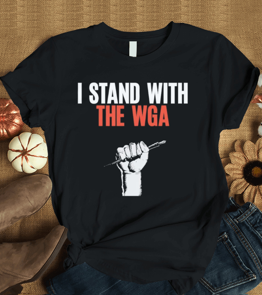 I Stand With WGA Logo Graphic Wrath Fist Artwork Tshirt Battle Writer Usa Harvard Union Caru T-Shirt