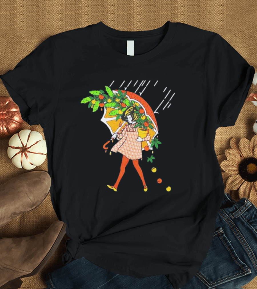 Citrus Terp Girl With Umbrella And Falling Fruit T-Shirt