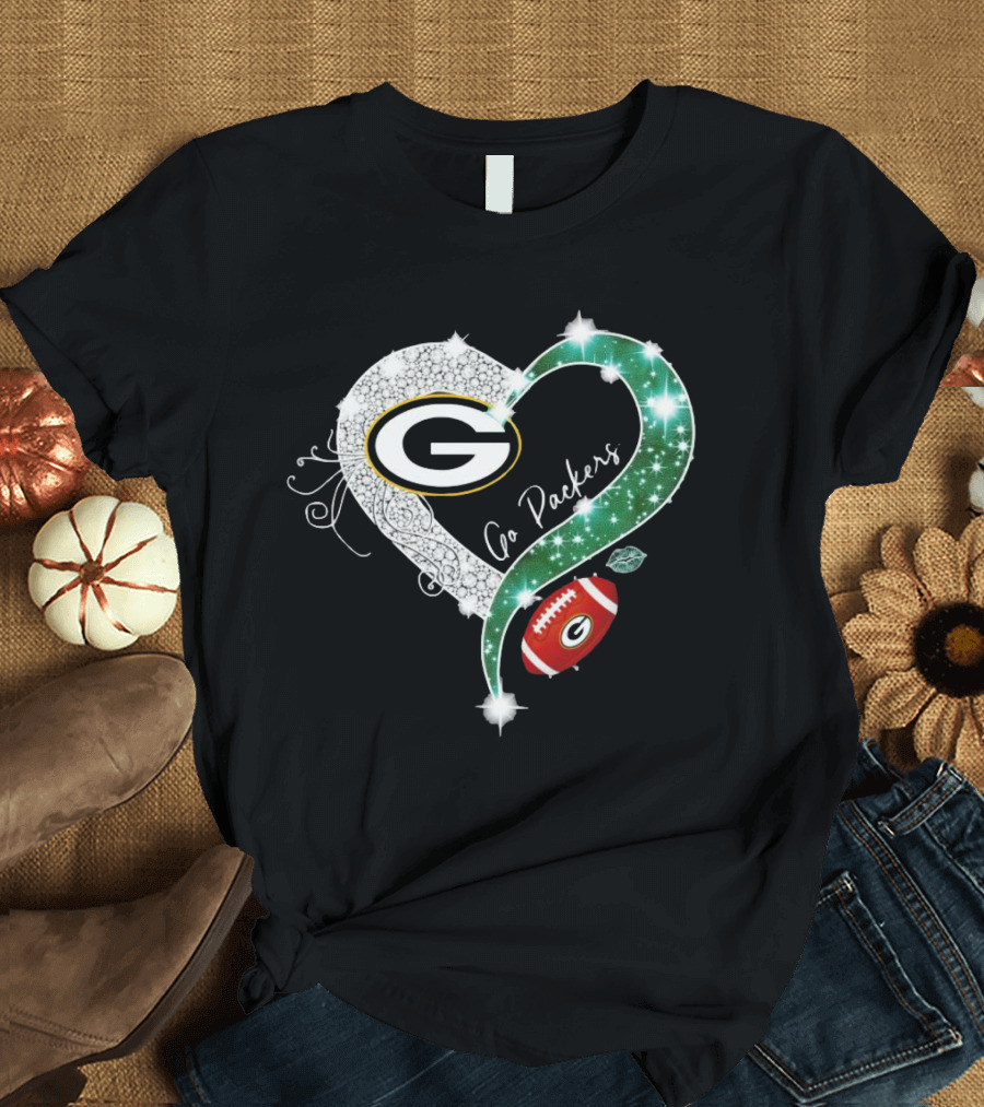 Green Bay Packers Heart Go Packers Diamond Blink Football T-Shirt