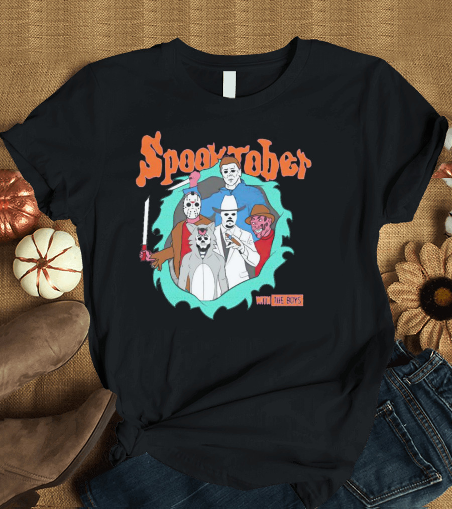 Spooktober With the Boys Horror Movies Shirt made from 100% pre-shrunk ring-spun cotton, unisex regular fit based on U.S. standard sizing. The shirt is designed, cut, sewn, and printed in the United States. Available in sizes S-5XL.