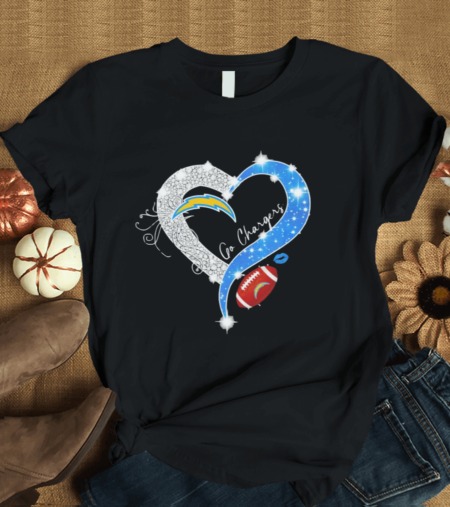 Los Angeles Chargers Go Chargers Heart Diamond Football Sparkle T-Shirt