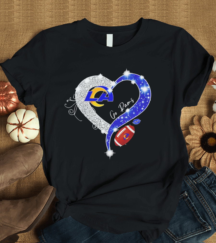 Los Angeles Rams Heart Go Rams Diamond Sparkle Football T-Shirt