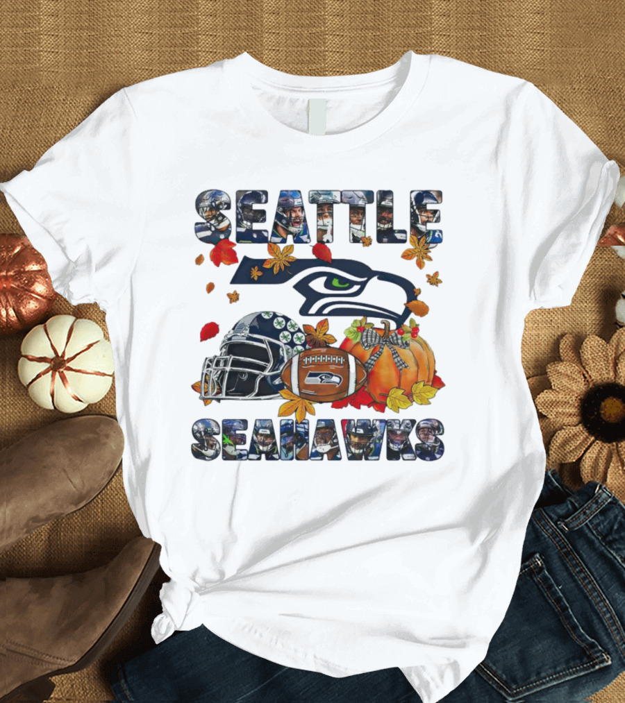 Seattle Seahawks Autumn Leaf Helmet Football Pumpkin T-Shirt