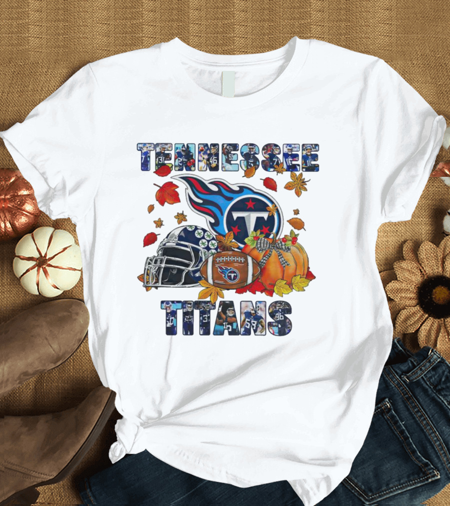 Tennessee Titans Fall Helmet Football Pumpkin Leaves T-Shirt