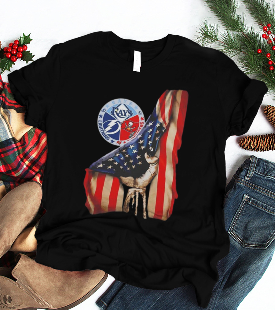 Tampa Bay Rays Lightning Buccaneers American Flag Fist T-Shirt