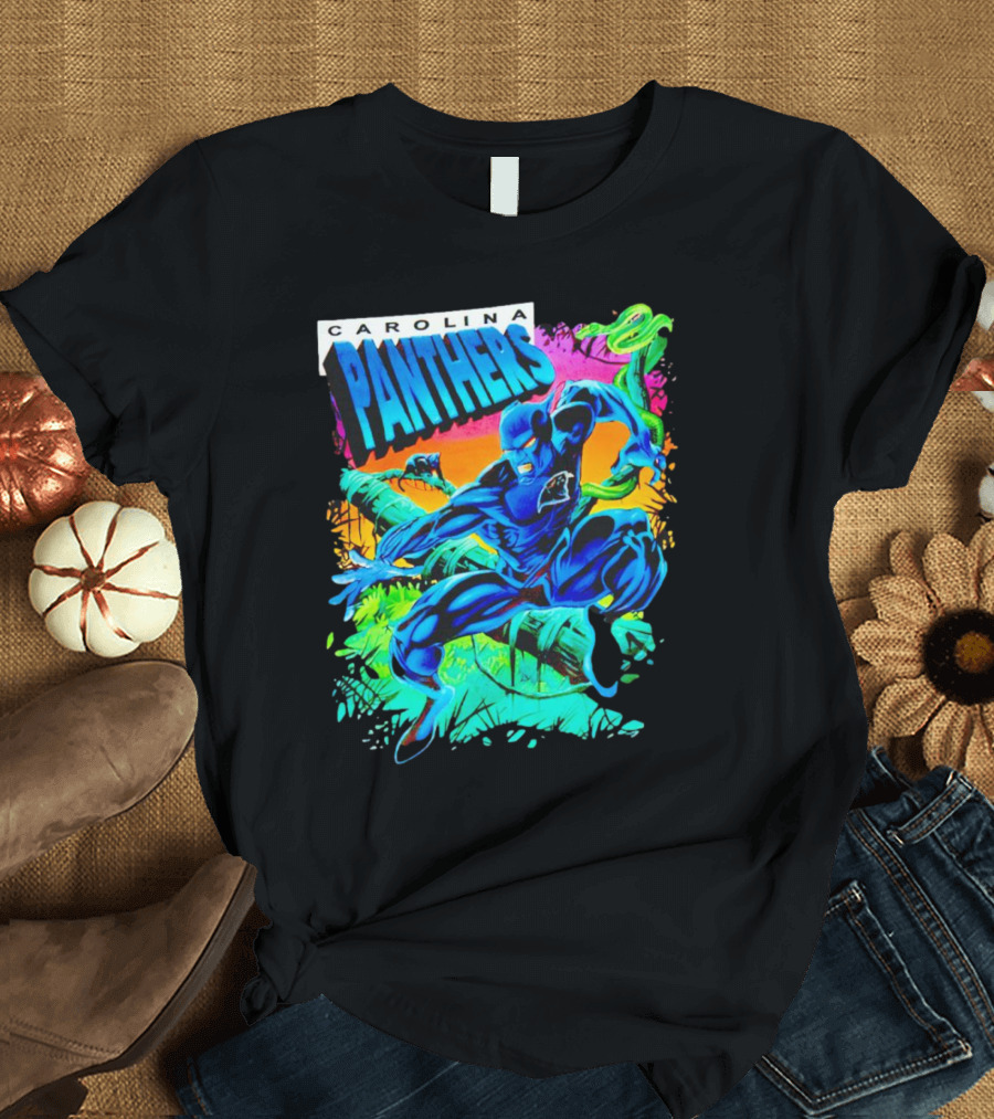 Carolina Panthers Black Panther Jungle Action Shirt made from 100% pre-shrunk ring-spun cotton, unisex regular fit based on U.S. standard sizing. The shirt is designed, cut, sewn, and printed in the United States. Available in sizes S-5XL.