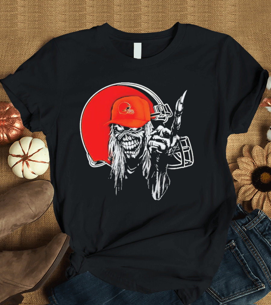 Cleveland Browns Skull With Helmet Halloween Football T-Shirt