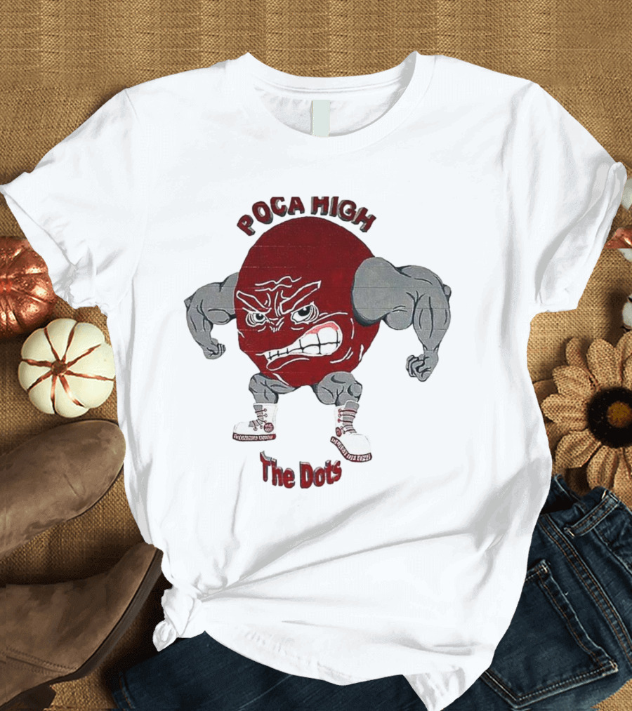 POCA HIGH The Dots Mascot with Muscular Arms and Sneakers Shirt made from 100% pre-shrunk ring-spun cotton, unisex regular fit based on U.S. standard sizing. The shirt is designed, cut, sewn, and printed in the United States. Available in sizes S-5XL.