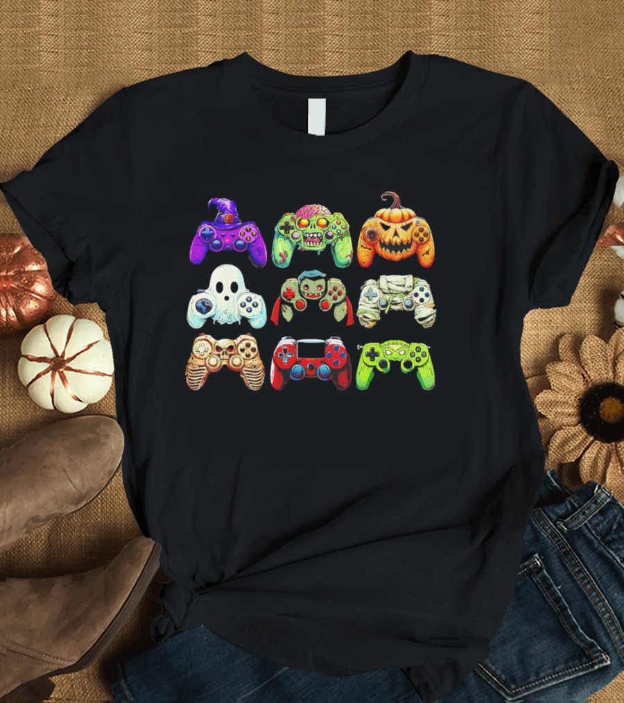 Gaming Skeleton Zombie Ghost Pumpkin Witch Halloween Controller Collection T-Shirt