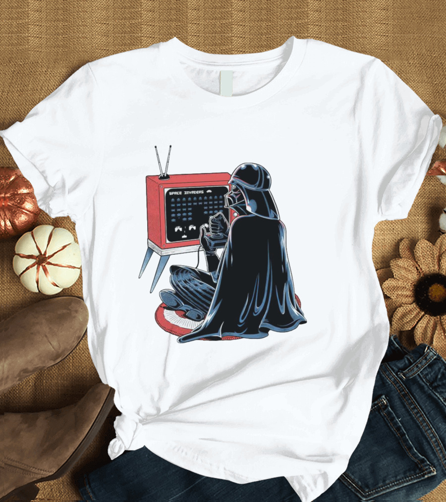Nostalgic Darth Vader Playing Space Invaders On Retro TV T-Shirt