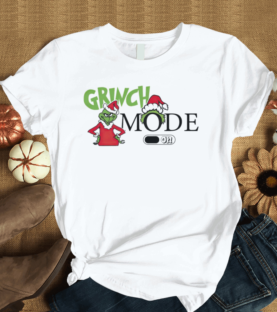 Grinch Mode On with Red Santa Hat and Grinch Drawing Shirt made from 100% pre-shrunk ring-spun cotton, unisex regular fit based on U.S. standard sizing. The shirt is designed, cut, sewn, and printed in the United States. Available in sizes S-5XL.