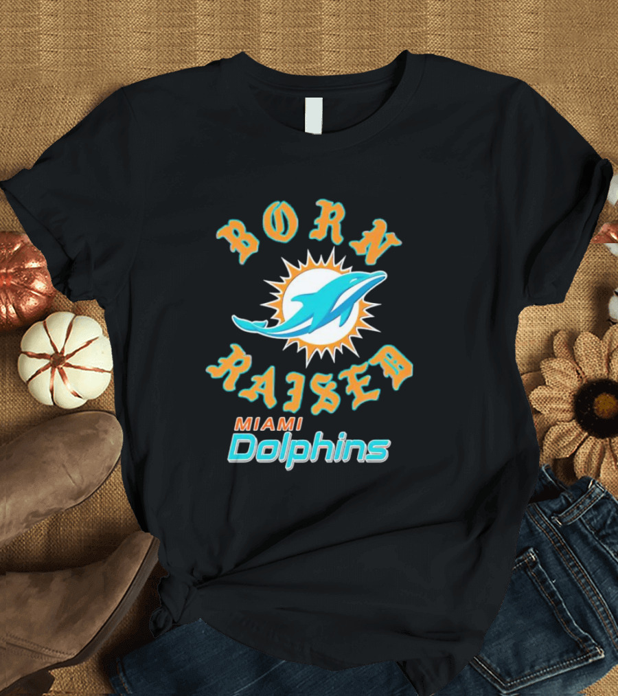 Born Raised Miami Dolphins Shirt made from 100% pre-shrunk ring-spun cotton, unisex regular fit based on U.S. standard sizing. The shirt is designed, cut, sewn, and printed in the United States. Available in sizes S-5XL.