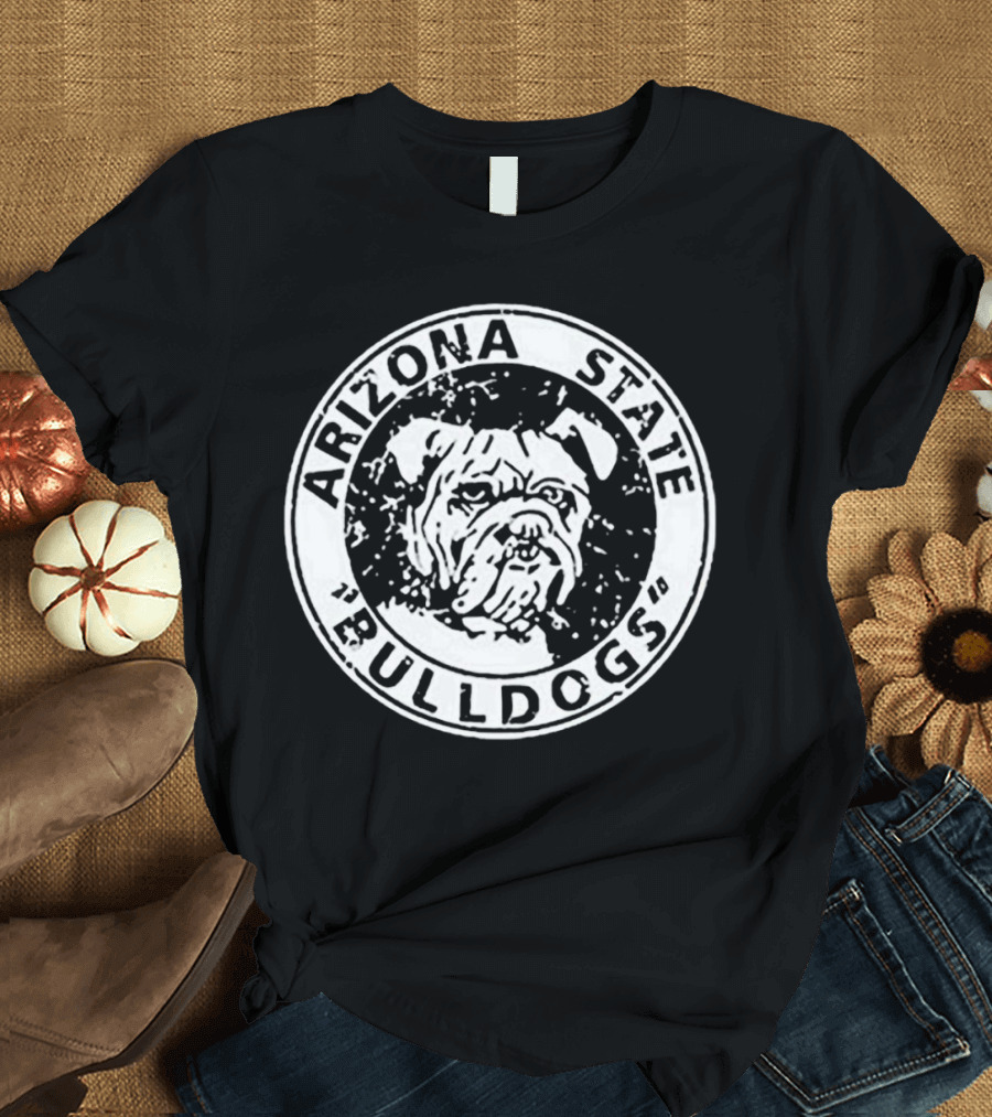 Arizona State Bulldogs Vintage Logo Circular Emblem Shirt made from 100% pre-shrunk ring-spun cotton, unisex regular fit based on U.S. standard sizing. The shirt is designed, cut, sewn, and printed in the United States. Available in sizes S-5XL.
