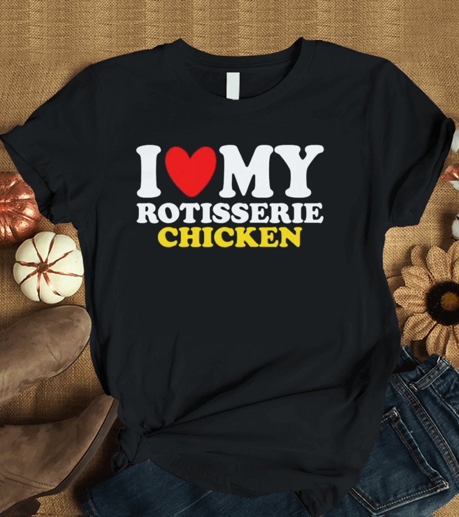 I Love My Heart Rotisserie Chicken Shirt made from 100% pre-shrunk ring-spun cotton, unisex regular fit based on U.S. standard sizing. The shirt is designed, cut, sewn, and printed in the United States. Available in sizes S-5XL.
