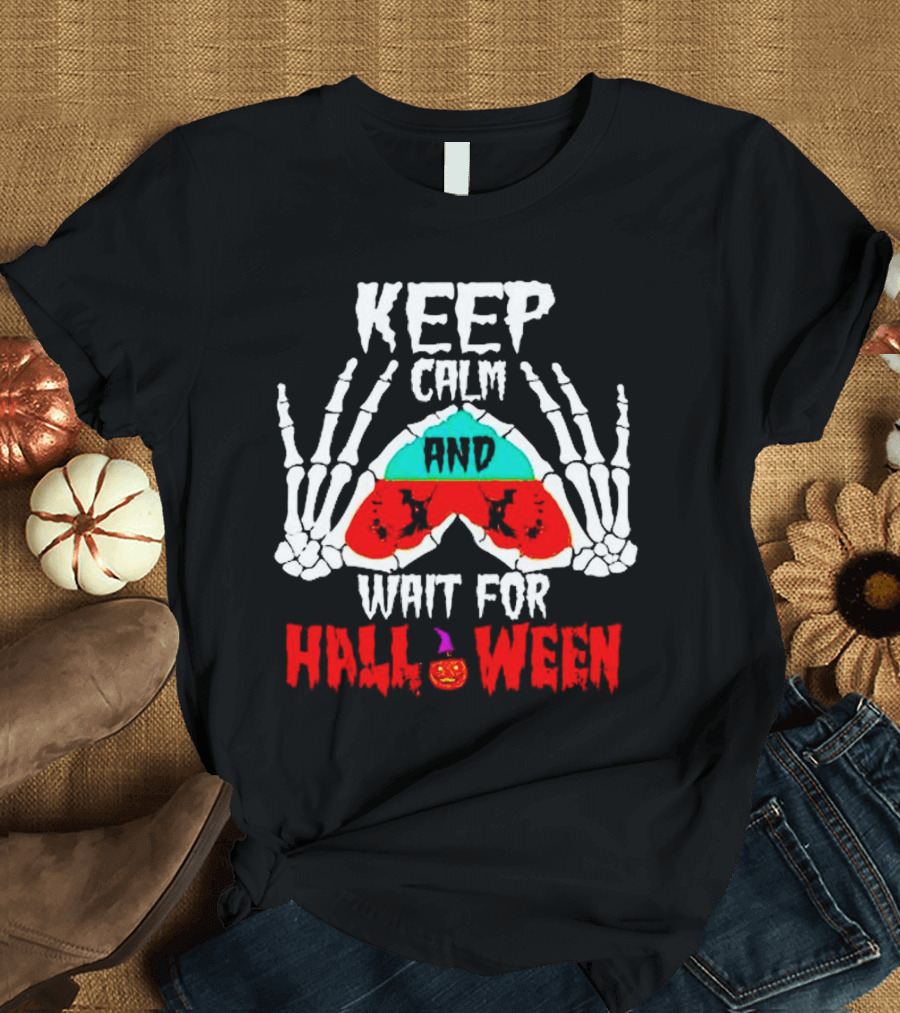 KEEP CALM AND WAIT FOR HALLOWEEN SKELETON HANDS PUMPKIN T-Shirt