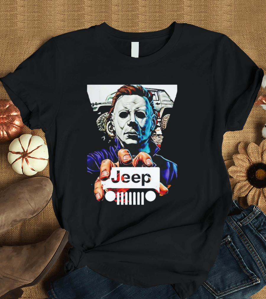 Michael Myers Jeep Iconic Crossover Shirt made from 100% pre-shrunk ring-spun cotton, unisex regular fit based on U.S. standard sizing. The shirt is designed, cut, sewn, and printed in the United States. Available in sizes S-5XL.