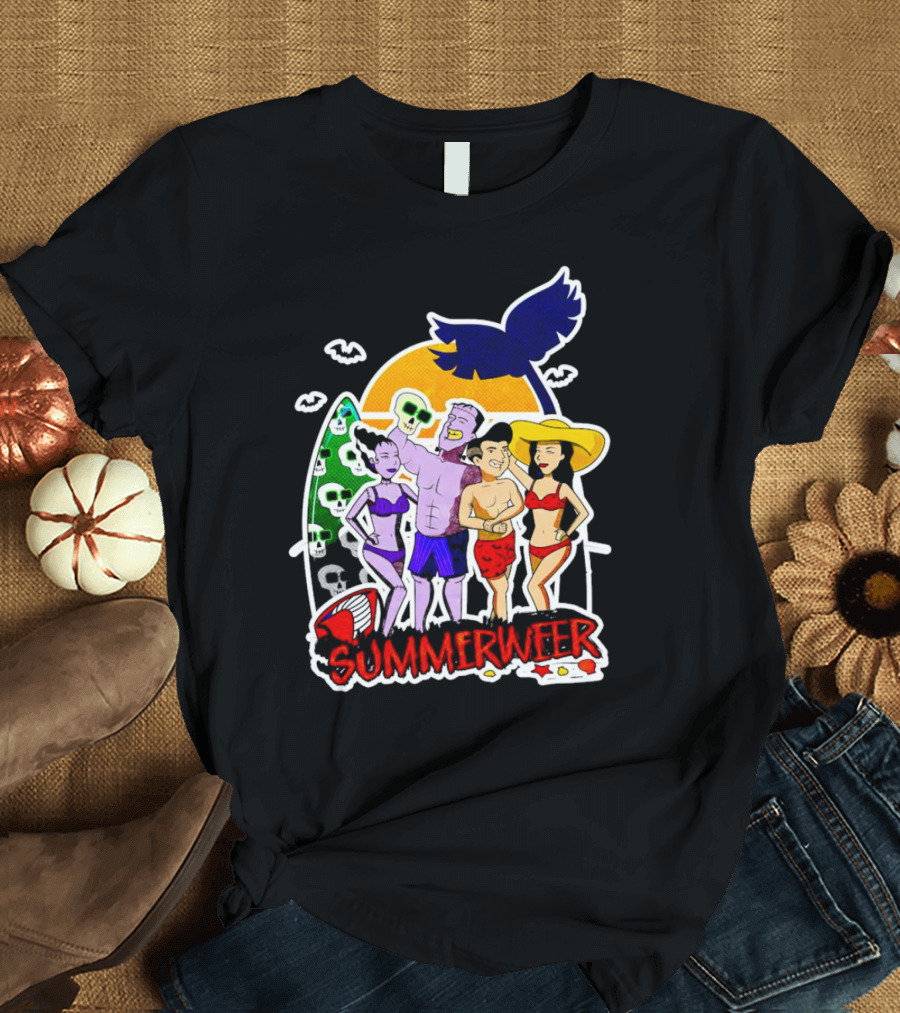 SUMMERWEEN Halloween Beach Party With Monsters And Skulls T-Shirt