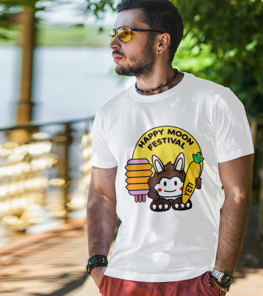 Rockstar Games Happy Moon Festival Yeti Lantern Rabbit Shirt made from 100% pre-shrunk ring-spun cotton, unisex regular fit based on U.S. standard sizing. The shirt is designed, cut, sewn, and printed in the United States. Available in sizes S-5XL.