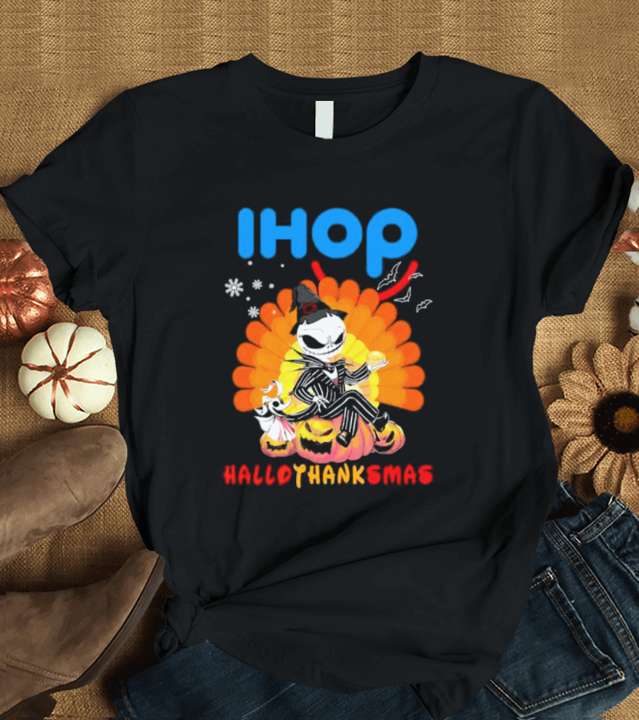 IHOP Jack Skellington HalloThanksMas Halloween Shirt made from 100% pre-shrunk ring-spun cotton, unisex regular fit based on U.S. standard sizing. The shirt is designed, cut, sewn, and printed in the United States. Available in sizes S-5XL.
