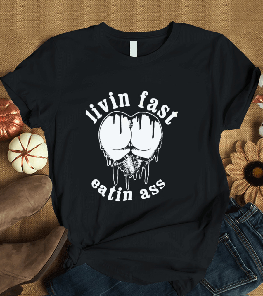 Livin Fast Eatin Ass Dripping Heart Shirt made from 100% pre-shrunk ring-spun cotton, unisex regular fit based on U.S. standard sizing. The shirt is designed, cut, sewn, and printed in the United States. Available in sizes S-5XL.