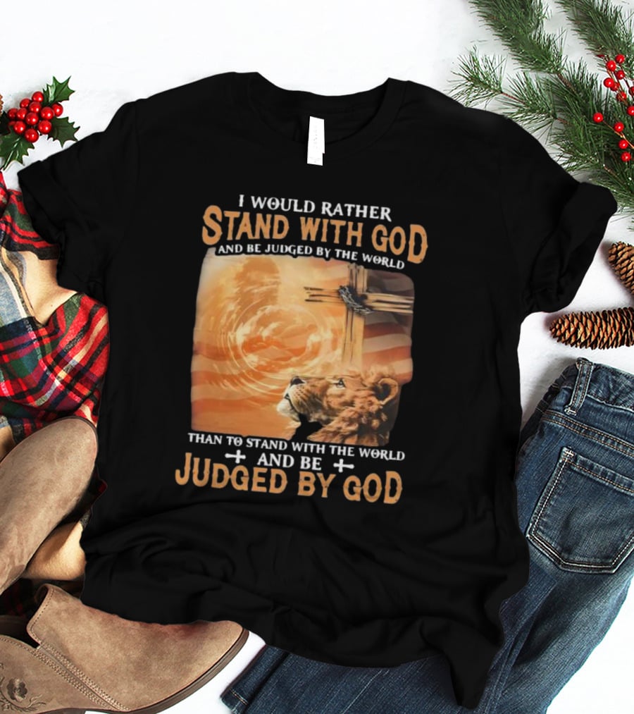 I Would Rather Stand With God And Be Judged By The World Lion Cross Patriotic Faith T-Shirt