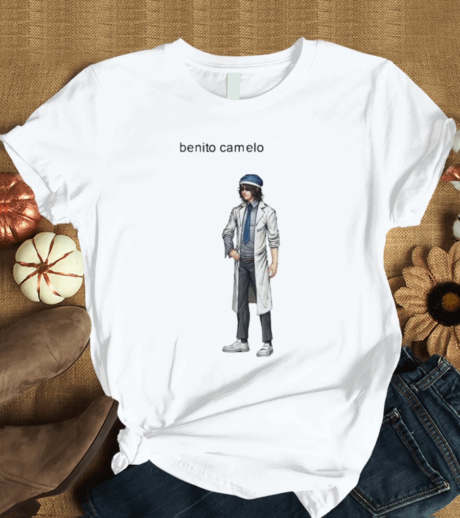 Benito Camelo Cartoon Character with Blue Cap and Lab Coat Shirt made from 100% pre-shrunk ring-spun cotton, unisex regular fit based on U.S. standard sizing. The shirt is designed, cut, sewn, and printed in the United States. Available in sizes S-5XL.