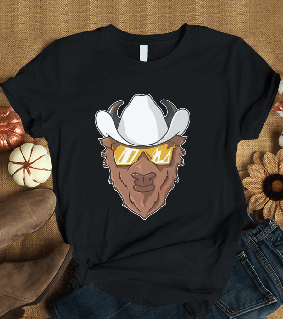Cartoon Buffalo Wearing Cowboy Hats And Sunglasses T-Shirt