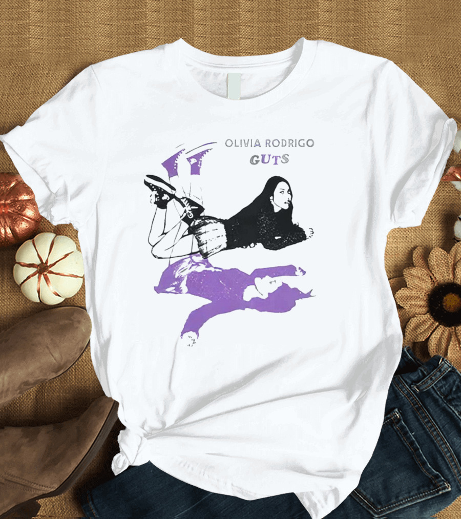 Olivia Rodrigo Guts Dark Artistic Portrait with Purple Accents Shirt made from 100% pre-shrunk ring-spun cotton, unisex regular fit based on U.S. standard sizing. The shirt is designed, cut, sewn, and printed in the United States. Available in sizes S-5XL.
