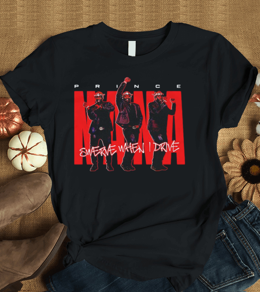 Prince Nana Swerve When I Drive Shirt made from 100% pre-shrunk ring-spun cotton, unisex regular fit based on U.S. standard sizing. The shirt is designed, cut, sewn, and printed in the United States. Available in sizes S-5XL.