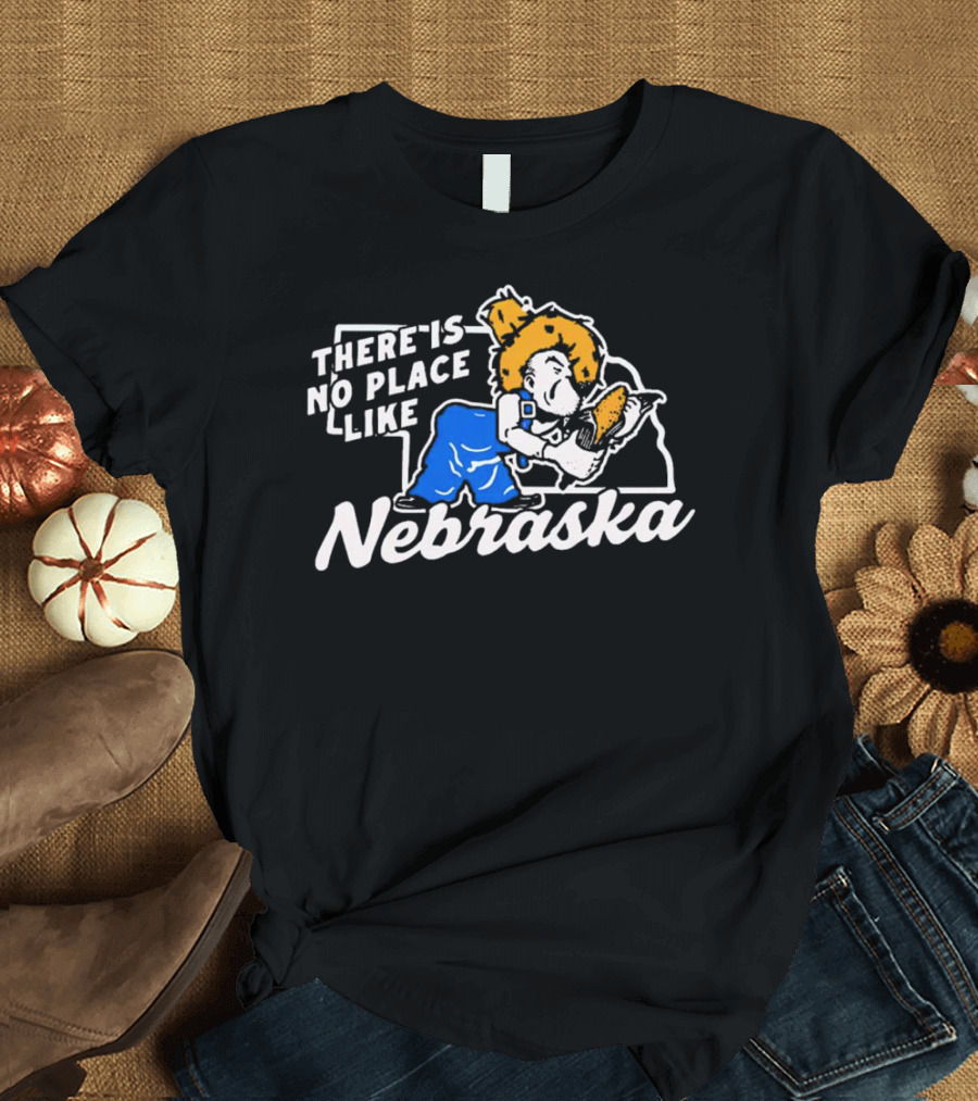 There Is No Place Like Nebraska Cornhuskers Farmer Mascot Eating Corn T-Shirt