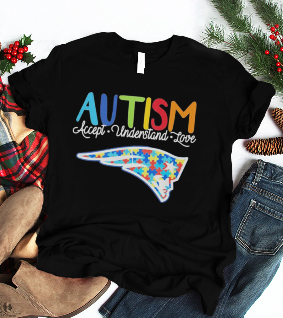 New England Patriots Autism Awareness Accept Understand Love Puzzle T-Shirt
