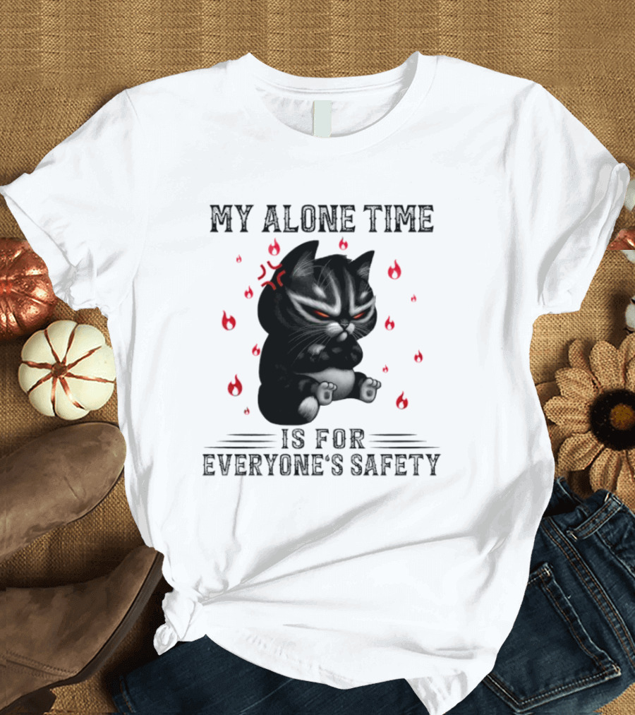 Angry Cat My Alone Time Is For Everyone’s Safety With Fiery Mood T-Shirt
