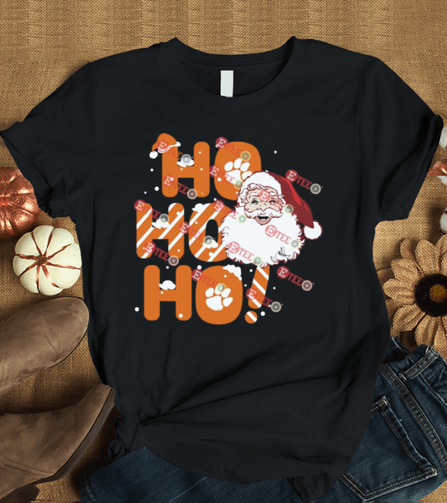 Clemson Tigers Santa Claus Ho Ho Ho Christmas Paw Print Snowflakes T-Shirt