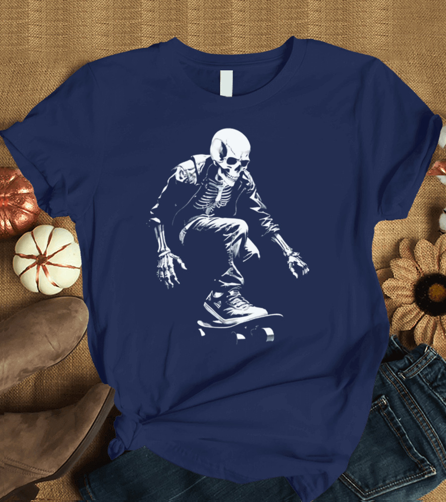 Skeleton Skateboarder Cool Iconic Street Style Skater Pose Shirt made from 100% pre-shrunk ring-spun cotton, unisex regular fit based on U.S. standard sizing. The shirt is designed, cut, sewn, and printed in the United States. Available in sizes S-5XL.