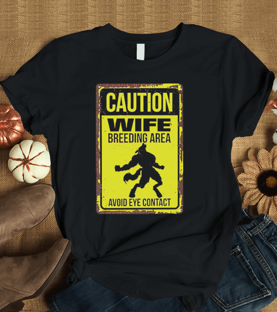 Caution Wife Breeding Area Avoid Eye Contact Warning Sign T-Shirt