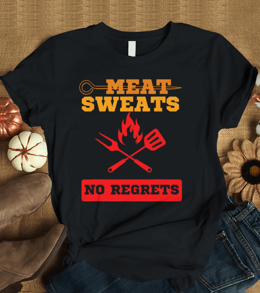 MEAT SWEATS NO REGRETS BBQ FLAME FORK SPATULA T-Shirt