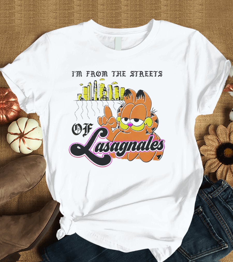 Garfield I'm From The Streets Of Lasagnales With City Skyline And Finger Pointing T-Shirt
